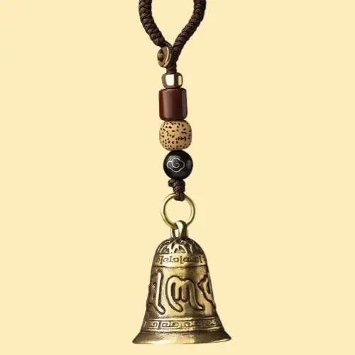 迷你銅鐘復刻古剎風鈴造型,刻有《金剛經》片段。鈴聲清脆可化解煞氣,掛於鑰匙或包包上,既是精緻配件,更是移動式護身符。